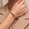 Shine brighter with this luxury twist bangle, finished in 18K gold tone and sparkling crystals ✨